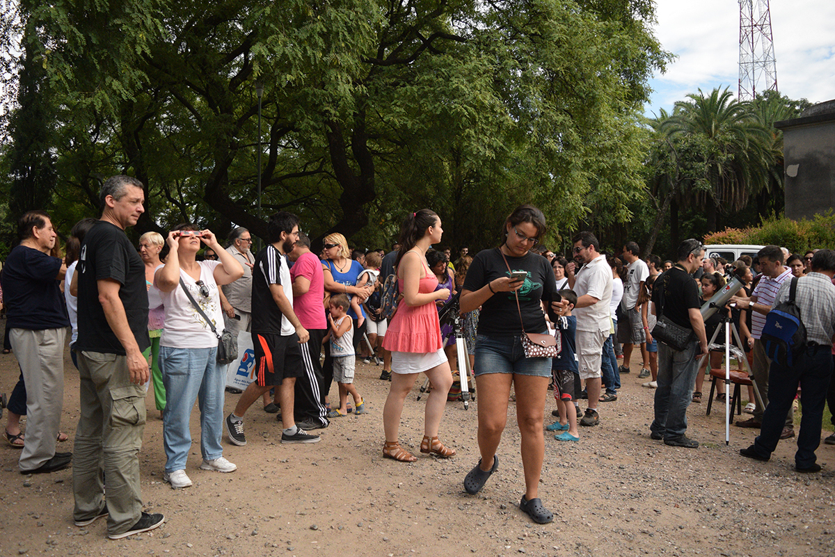 Desde las 9, padres con chicos llegaron al observatorio, donde se habían dispuesto cinco telescopios con filtro solar. El eclipse pudo verse desde las 9.25 hasta aproximadamente las 10.15 , porque luego se nubló. Pasadas las 11.30, el cielo comenzó a despejarse y se pudo ver la última media hora del fenómeno.