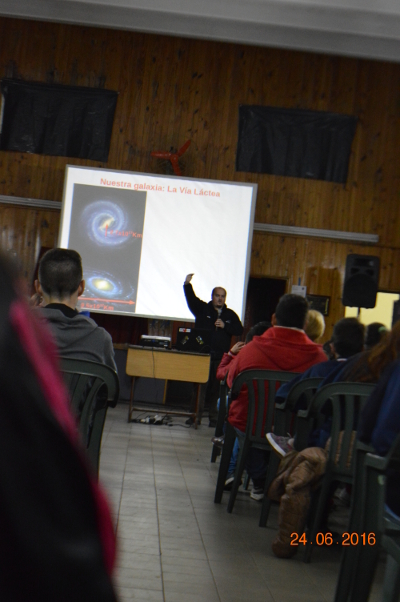 En esta oportunidad los alumnos de primer a sexto año , sus padres y docentes de la institución pudieron participar de la charla titulada ¿Qué tan grande es el Universo? a cargo del Lic. Román Vena Valdarenas quien estuvo acompañado por el Ing. Horacio Rodríguez y el Lic. Silvio Rodríguez Moncada.